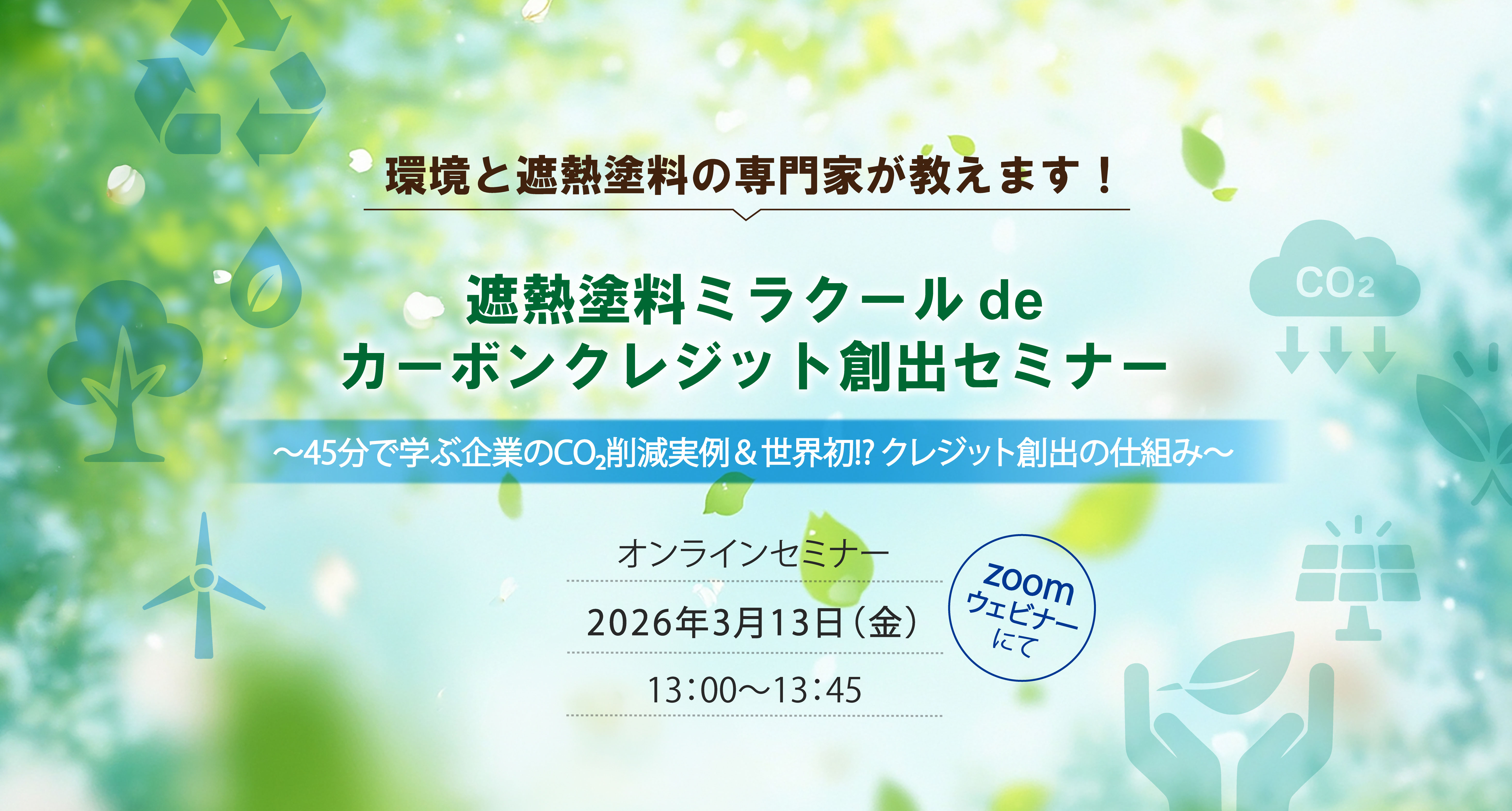| セミナー名 | 遮熱塗料ミラクール de カーボンクレジット創出セミナー